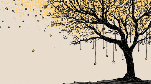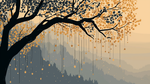 Ver todos os detalhesPapel de parede árvore estrelada | Uma árvore gráfica com estrelas suspensas e folhagem dourada