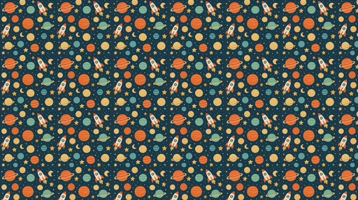 Ver todos os detalhesPapel de parede espaço | Padrões de foguete, planeta e estrela colorida