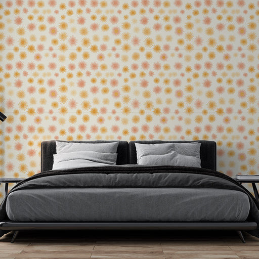 WonderMuralNosso papel de parede se destaca por um padrão de flores estrela em tons de amarelo, pêssego e rosa, criando uma atmosfera alegre e acolhedora. O f...