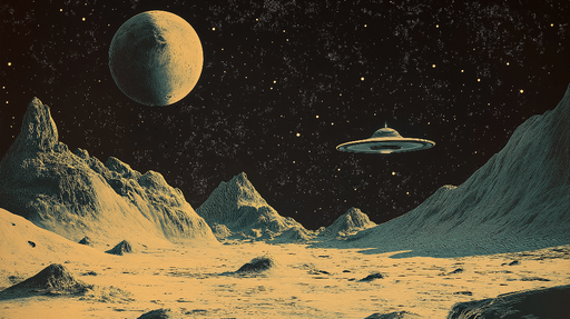 Ver todos os detalhesUniverso de papel de parede | Paisagem lunar com satélites e estrelas distantes