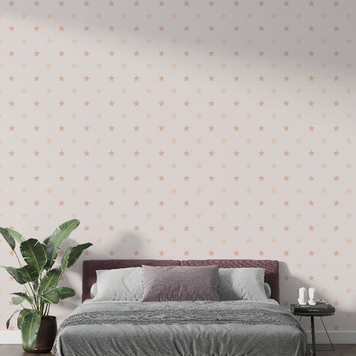 Studio SamaDescubra nosso papel de parede mural estrelas adornado com padrões estrelados em tons suaves de bege e pêssego delicado. Perfeito para adicionar um...