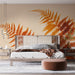 Nosso papel de parede mural destaca samambaias em tons vibrantes de laranja, criando um contraste quente contra um fundo claro. Os detalhes delicados das folhas trazem um toque de elegância natural, enquanto o gradiente de cores evoca uma ambiência outonal suave.