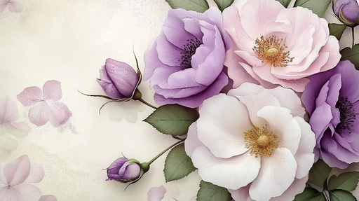 Ver todos os detalhesPapel de parede floral | Flores magníficas em tons de rosa em um fundo suave