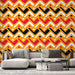Traga um toque dinâmico para o seu interior com o nosso papel de parede mural étnico geométrico em cores brilhantes e quentes. Os padrões de zigue-zague vermelho, preto, branco e laranja criam um visual ousado e energético, perfeito para uma sala de estar moderna ou um quarto alegre.