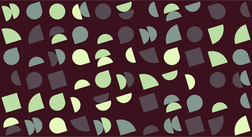 Studio SamaEste papel de parede mural geométrico apresenta formas abstratas circulares, quadradas e crescentes em tons de verde e cinza em um fundo marrom esc...
