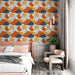 Para harmonizar com este design, opte por móveis em tons neutros, como branco, bege ou cinza, e adicione alguns elementos decorativos nas mesmas cores do papel de parede para unir todo o visual.