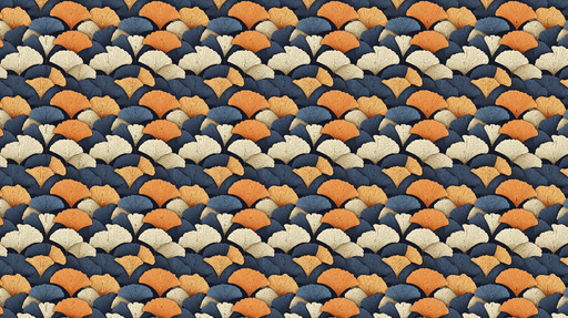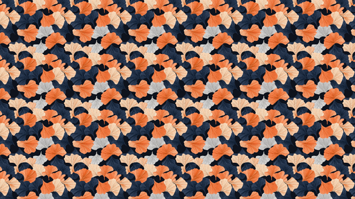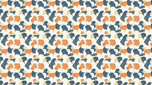 Ver todos os detalhesPapel de parede folhas de ginkgo | Um padrão colorido de folhas estilizadas em laranja, creme e preto