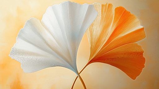 Ver todos os detalhesPapel de parede folhas de ginkgo | Folhas de ginkgo brancas e laranjas em um fundo suave