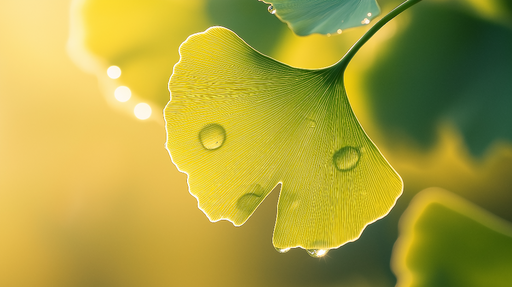 Ver todos os detalhesPapel de parede ginkgo | Folha de ginkgo brilhante com gotas de água
