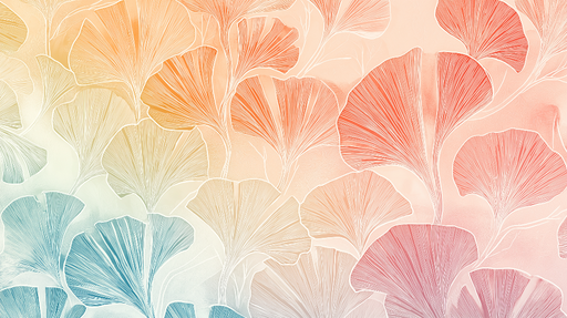 Ver todos os detalhesPapel de parede ginkgo | Padrão artístico de folhas de ginkgo em gradientes suaves