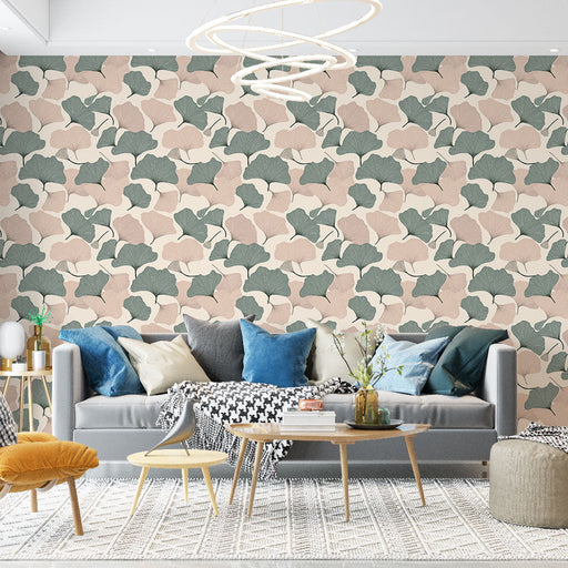 WonderMuralNosso Papel de parede apresenta um charmoso padrão de folha de ginkgo, realçado por tons de verde e rosa em um fundo creme. Este design elegante e ...