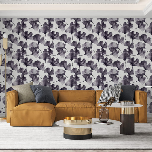 Ver todos os detalhesPapel de parede ginkgo | Padrões delicados de folhas de ginkgo em tons de roxo