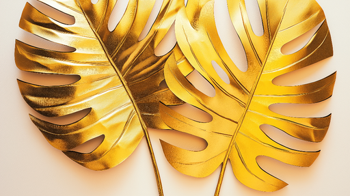 Ver todos os detalhesPapel de parede folha dourada | Elegante folha brilhante de monstera