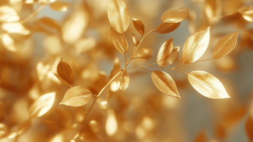 Ver todos os detalhesPapel de parede folhas douradas | Folhas brilhantes elegantes em um fundo claro