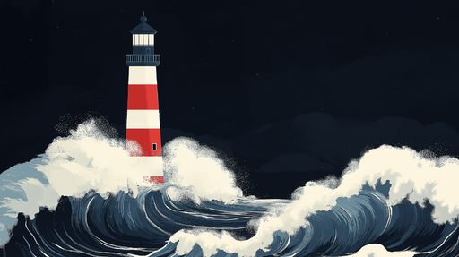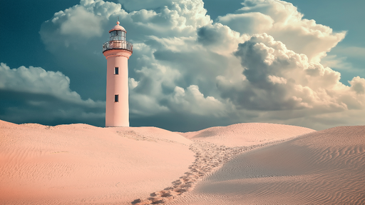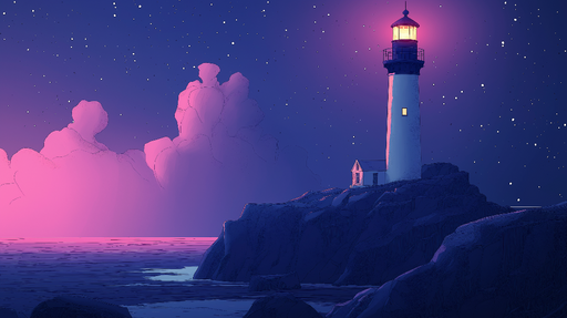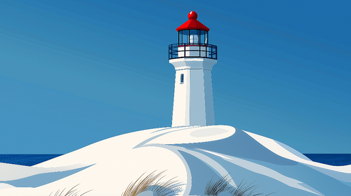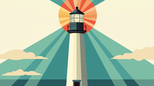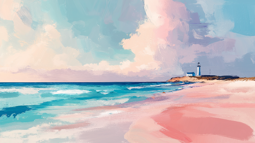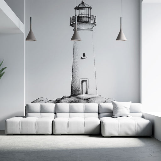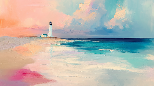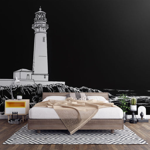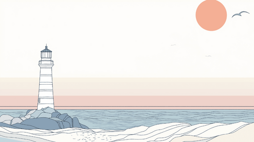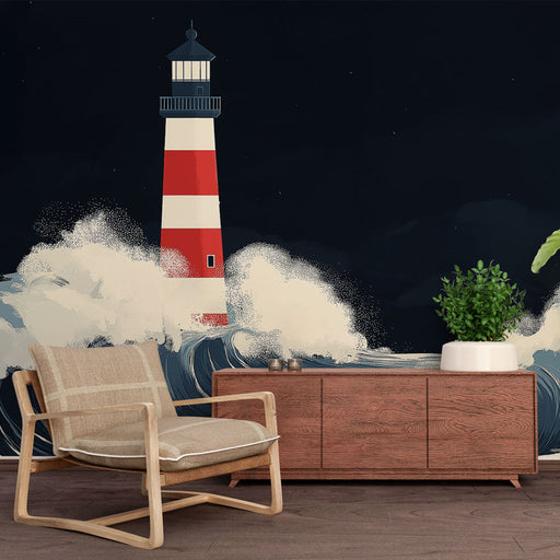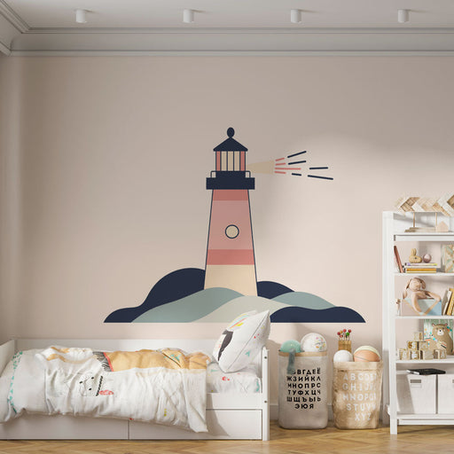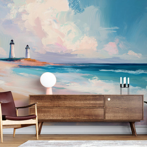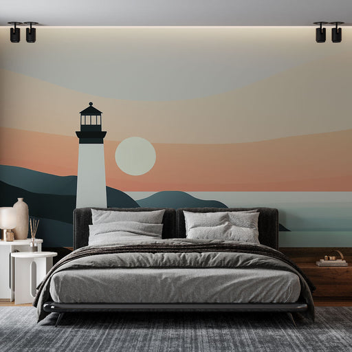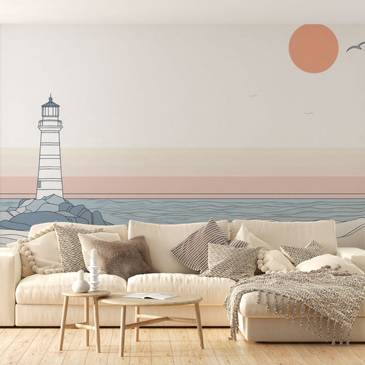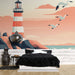 Papel de parede marinho-farol | Farol icônico em fundo pastel à beira-mar