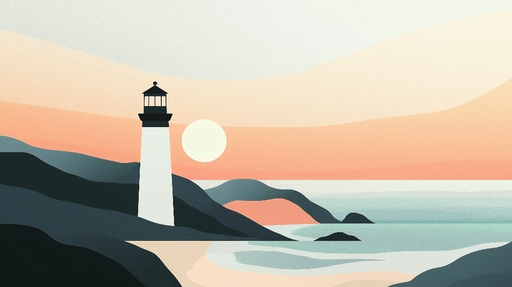 Este papel de parede mural artístico captura a beleza de um farol marinho estilizado, rodeado por rochas e gaivotas voando, tudo em uma paleta de cores suaves e reconfortantes. Os tons pastel evocam um pôr do sol sereno, trazendo uma atmosfera quente e tranquila para qualquer espaço.