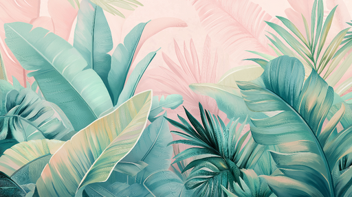 Ver todos os detalhesPapel de parede folhagem colorida | Folhas tropicais vibrantes e fundo pastel