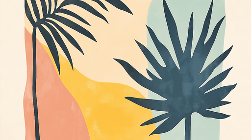 FluxGraphicEste papel de parede captura a essência relaxante de praias exóticas, com suas palmeiras balançando suavemente ao vento e pranchas de surfe convida...