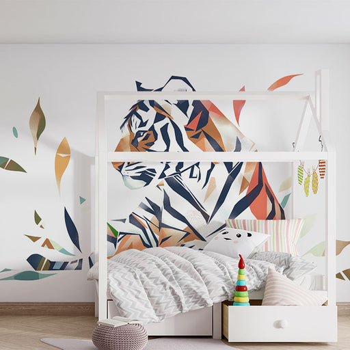 WonderMuralEste cativante papel de parede mural apresenta um tigre sentado, renderizado em um estilo geométrico moderno com facetas que parecem se desprender ...