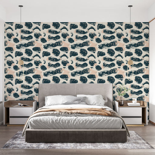 Ver todos os detalhesPapel de parede abstrato | Padrões modernos em azul meia-noite e rosa pastel