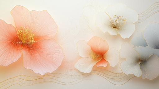 Ver todos os detalhesPapel de parede com flores abstratas | Design floral delicado com tons pastel e detalhes dourados