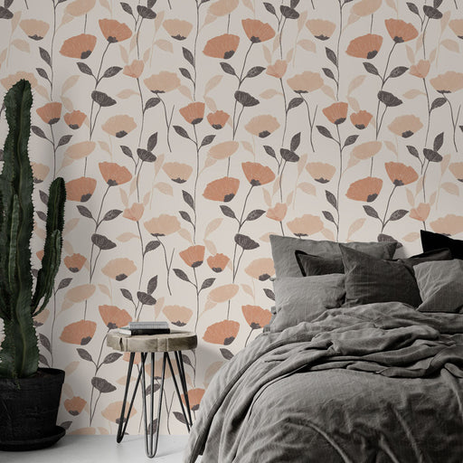 WonderMuralEste papel de parede apresenta um encantador motivo de flores delicadas em tons suaves de pêssego e bege, harmoniosamente misturados com toques de ...