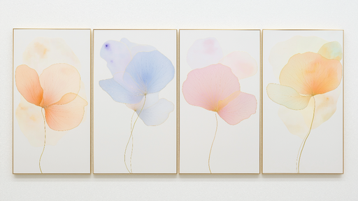 WonderMuralEste papel de parede apresenta um conjunto de quatro flores delicadamente desenhadas, cada uma mostrando tons pastéis que variam do laranja ao azul...