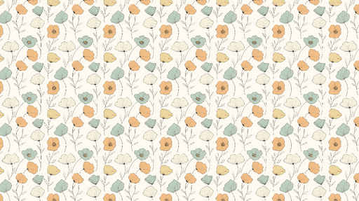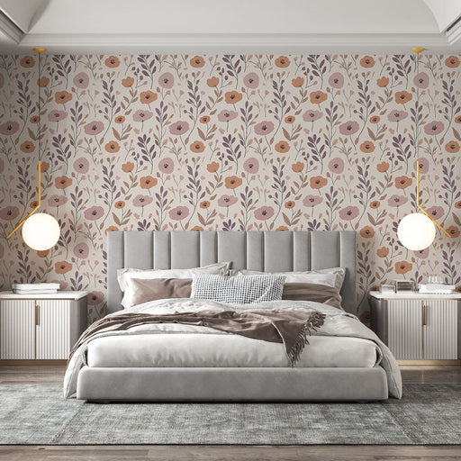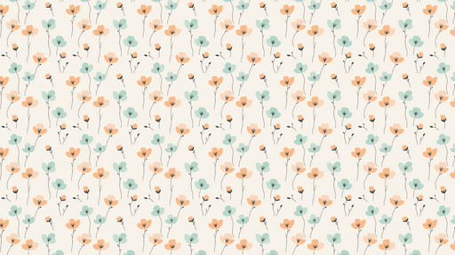 WonderMuralEste papel de parede apresenta um charmoso padrão de flores em tons pastel, delicadamente ilustradas com tons de laranja e verde menta em um fundo ...