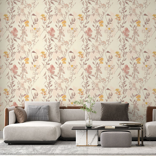 Ver todos os detalhesPapel de parede floral | Um padrão delicado de flores em tons pastel em um fundo creme