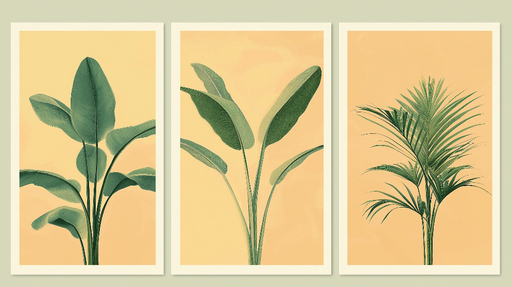 Ver todos os detalhesPapel de parede imitação de quadro | Padrões luxuriantes de folhagem em um fundo pastel