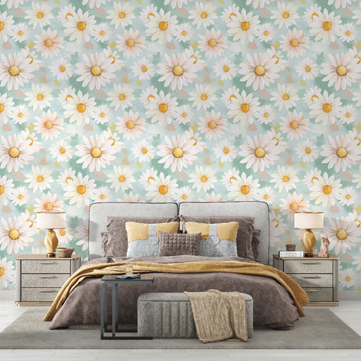 Ver todos os detalhesPapel de parede margaridas | Padrão floral com margaridas em tons pastel em um fundo suave