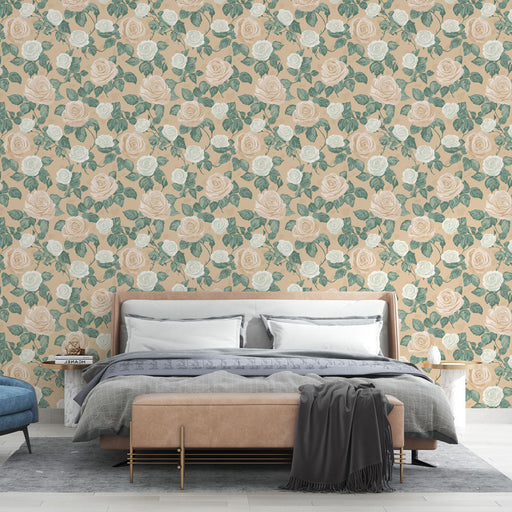 WonderMuralEste papel de parede apresenta um belo padrão de rosas em tons pastel entrelaçadas com folhagens delicadas, em um fundo suave que traz um toque de ...