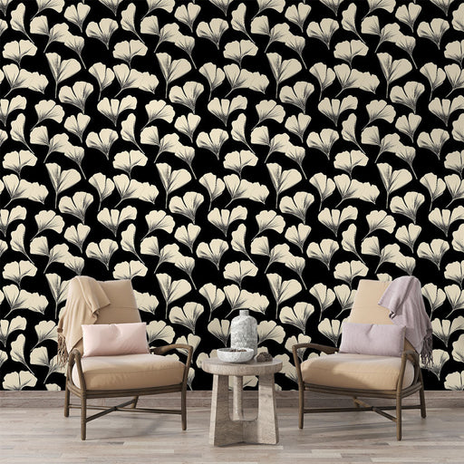 Papel de parede ginkgo | Folhas de ginkgo artisticamente dispostas em tons de preto, bege e caramelo