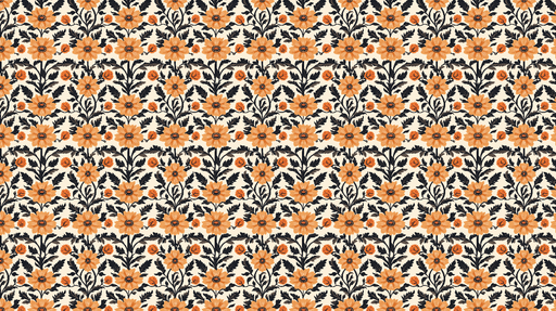 Ver todos os detalhesPapel de parede floral laranja e preto | Padrão de flores em fundo creme