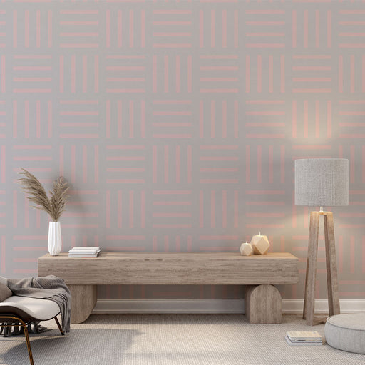 Ver todos os detalhesPapel de parede geométrico | Padrão cruzado rosa e bege