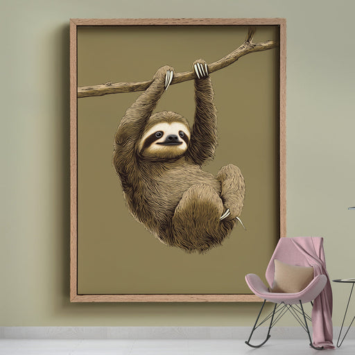 Ver todos os detalhesImitação de pintura de papel de parede | Ilustração de uma preguiça pendurada em estilo ilustrativo