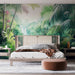 Para um visual harmonioso, combine este papel de parede mural com acessórios de madeira natural, tons de verde mais claros ou toques pastel que complementem o tema tropical.