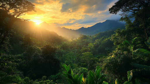 Art'loloMergulhe na magnificência da natureza com nosso Papel de parede representando um amanhecer deslumbrante sobre a floresta tropical. Esta cena cativa...