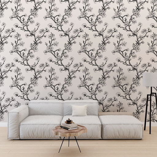 Ver todos os detalhesPapel de parede floral de galhos | Padrão delicado de galhos pretos com flores cor-de-rosa