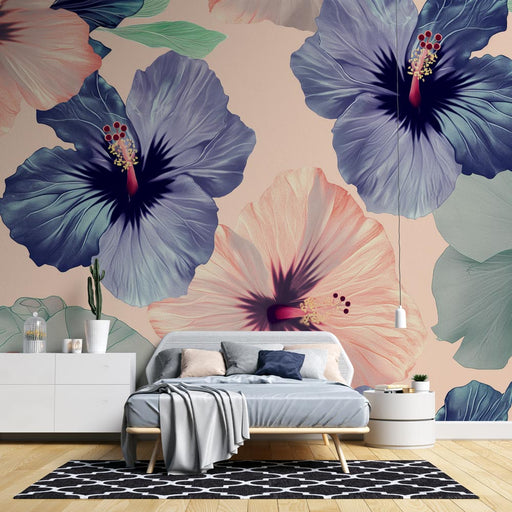 Ver todos os detalhesPapel de parede hibiscus flores | Grandes flores de cobre e malva