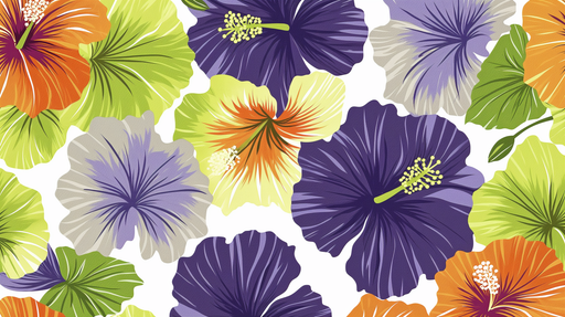 Ver todos os detalhesPapel de parede hibiscus flores | Fundo roxo e grandes flores coloridas