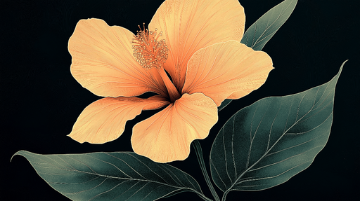 WonderMuralEste papel de parede mural destaca uma flor de hibisco em um delicado tom de laranja, delicadamente ilustrada em um fundo preto que acentua o esple...