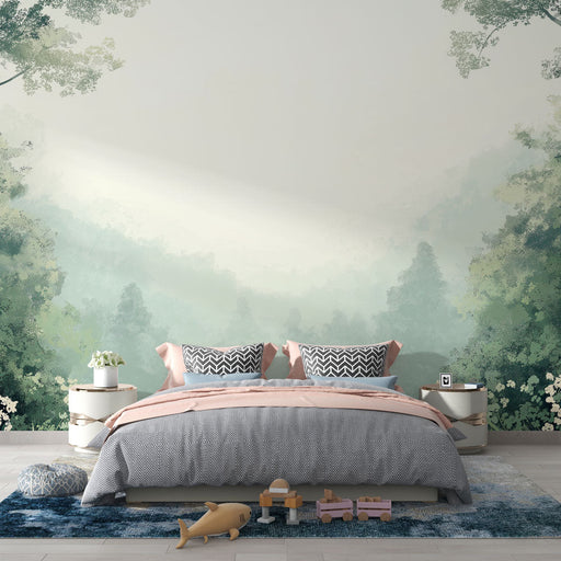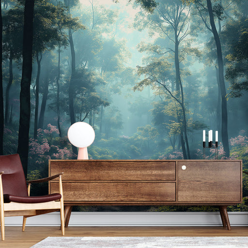 Ver todos os detalhesPapel de parede floresta enevoada | Atmosfera suave e calmante
