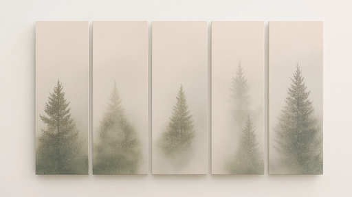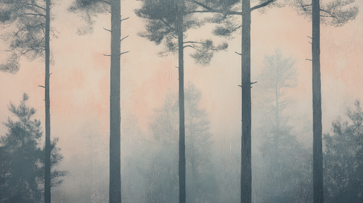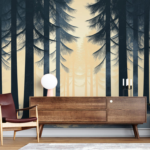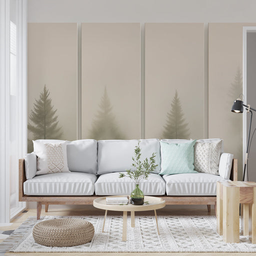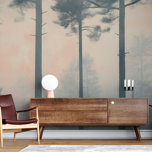 WonderMuralDescubra nosso Papel de parede inspirado por uma floresta enevoada com cores suaves, onde a luz do crepúsculo se mistura com a serenidade dos pinhe...