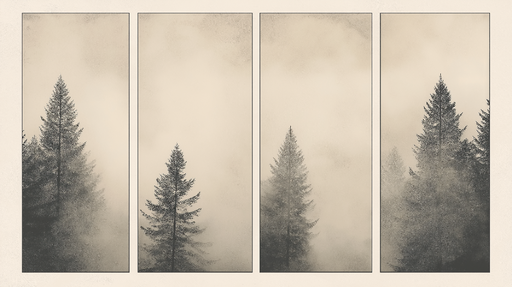 Ver todos os detalhesPapel de parede floresta-nevoenta | Uma paisagem de coníferas envoltas em mistério
