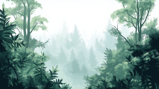 Ver todos os detalhesPapel de parede floresta-nevoenta | Uma paisagem de floresta envolta em névoa com folhagem exuberante