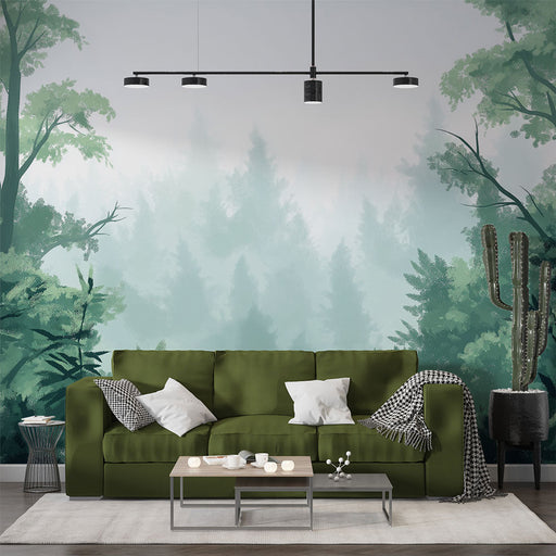 WonderMuralDescubra nosso cativante papel de parede de mural retratando uma floresta nebulosa, onde árvores majestosas se misturam a uma atmosfera suave de mi...