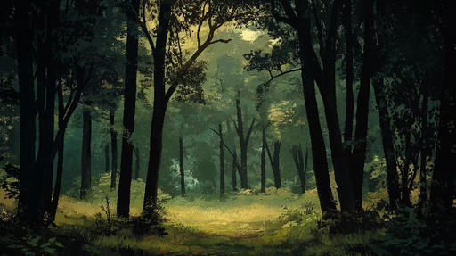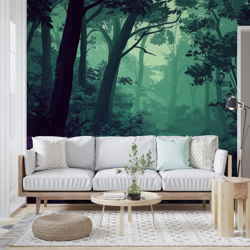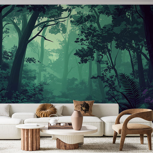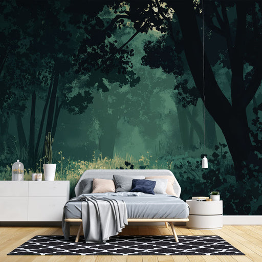 Ver todos os detalhesPapel de parede floresta misteriosa | Ambiente escuro e serenidade natural