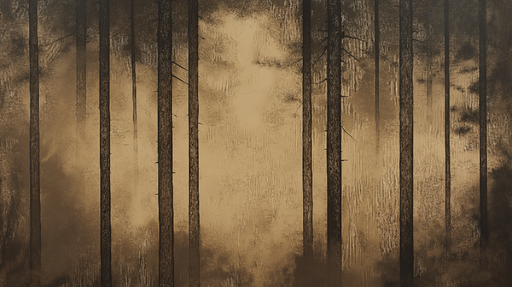 Ver todos os detalhesPapel de parede misteriosa floresta | Silhuetas de árvores em uma atmosfera enevoada