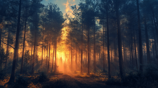 Ver todos os detalhesPapel de parede floresta misteriosa | Paisagem florestal calmante com luz dourada